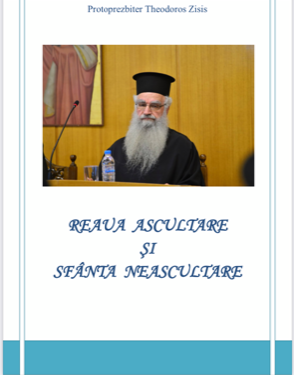 Avem deosebita bucurie de a prezenta pe acest site în variantă electronică cartea venerabilului preot Theodor Zisis, profesor emerit al Facultății de Teologie Ortodoxă a Universității „Aristotel” din Tesalonic „Reaua ascultare și sfânta neascultare”, apărută în limba română în anul 2020 la Editura „Babel” din Bacău, traducerea fiind realizată de Ieromonahul Lavrentie Carp.
